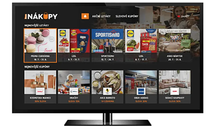 Prima Nákupy jsou samostatná aplikace v HbbTV, která obsahuje aktuální letáky více klientů. Diváci si prohlížejí letáky přímo na TV obrazovce a je zde možnost přiblížení. Měření návštěvnosti letáků je pomocí online statistik, ke kterým dostane každý klient svůj přístup.