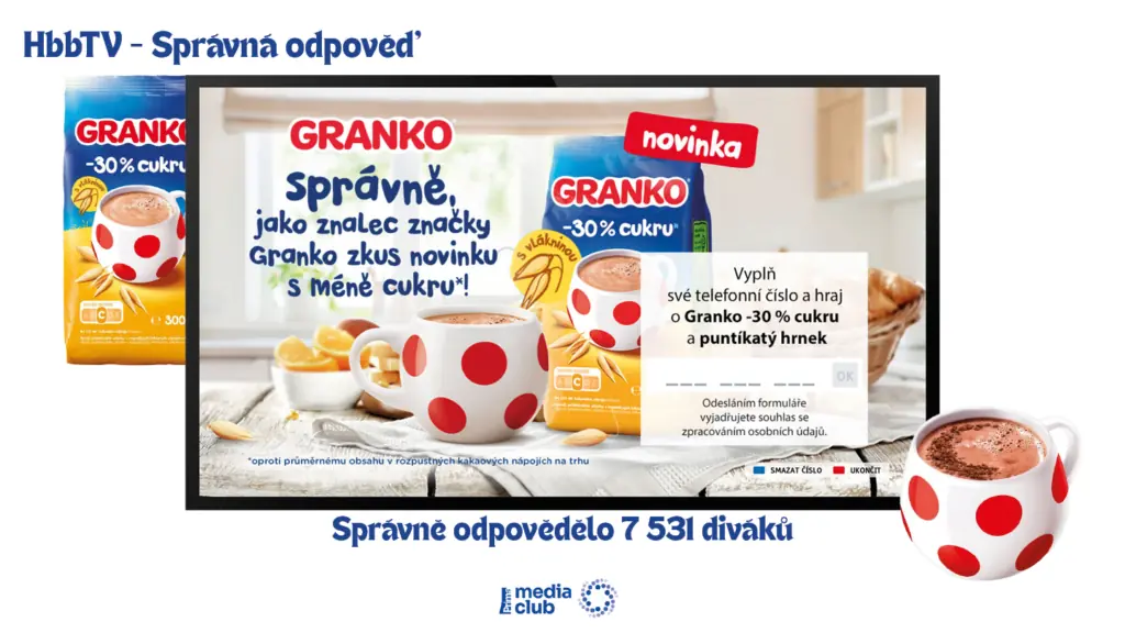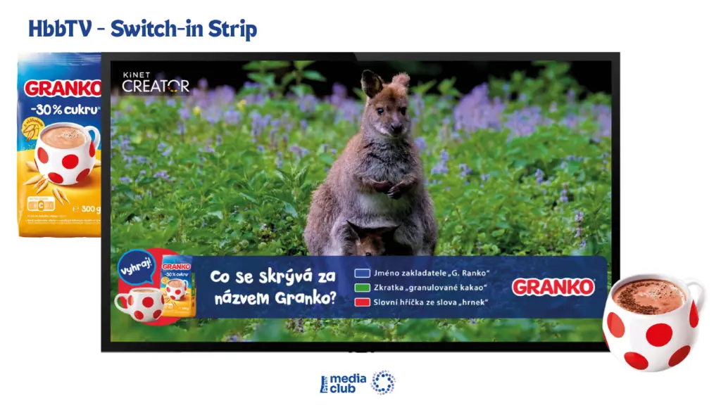 Case study Granko – HbbTV Switch-in Strip představuje úspěšnou kampaň, která využila inovativní formát switchin strip k dosažení mimořádných výsledků. Cílem bylo zvýšit zapojení uživatelů v prostředí HbbTV a zároveň dosáhnout vyšší míry interakce než u klasických bannerů. Díky atraktivnímu vizuálnímu zpracování a přesnému cílení se podařilo dosáhnout nadprůměrného CTR, což potvrzuje sílu interaktivní reklamy v prostředí HbbTV.