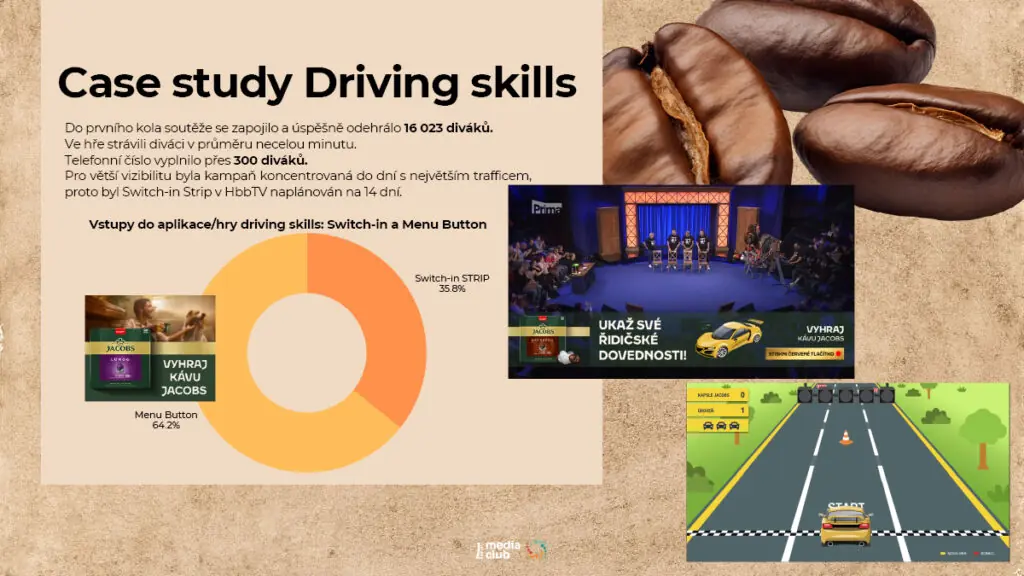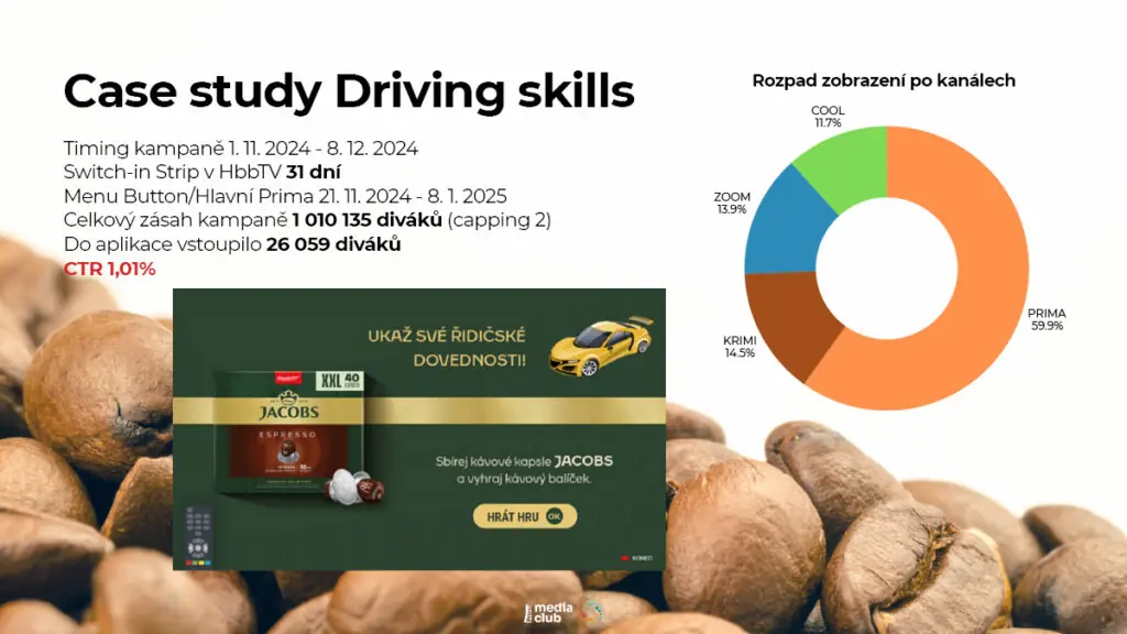 Cílem kampaně bylo zaujmout diváky přímo u jejich obrazovek a propojit značku s pocitem domácí pohody. Prostřednictvím interaktivního formátu v HbbTV inzerent představil originální hru Driving Skills, která divákům nabídla nejen zábavu, ale i možnost zapojit se do soutěže o atraktivní produktové balíčky.