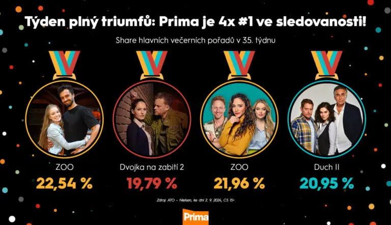 Týden plný úspěchů: skupina Prima 4x triumfovala ve sledovanosti nad konkurencí