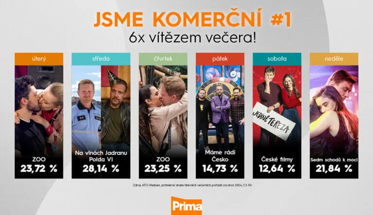Skupina Prima byla v roce 2023 opět komerční jedničkou u dospělých diváků