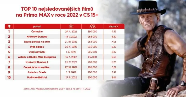 „Těší nás, že diváky filmový obsah stále baví a popularita kanálu Prima MAX roste. V naší obchodní cílové skupině 15–69 dosáhl kanál za posledních dvanáct měsíců na historicky nejlepší share, 3,20 % v celodni. Od samého začátku svého vysílání se Prima MAX drží přehledného vysílacího schématu, ve kterém si každá divácká skupina najde to své. Dokazují to koneckonců i velmi žánrově různorodé tituly, které se za poslední rok těšily největší sledovanosti,“ říká Roman Mrázek, programový ředitel skupiny Prima.