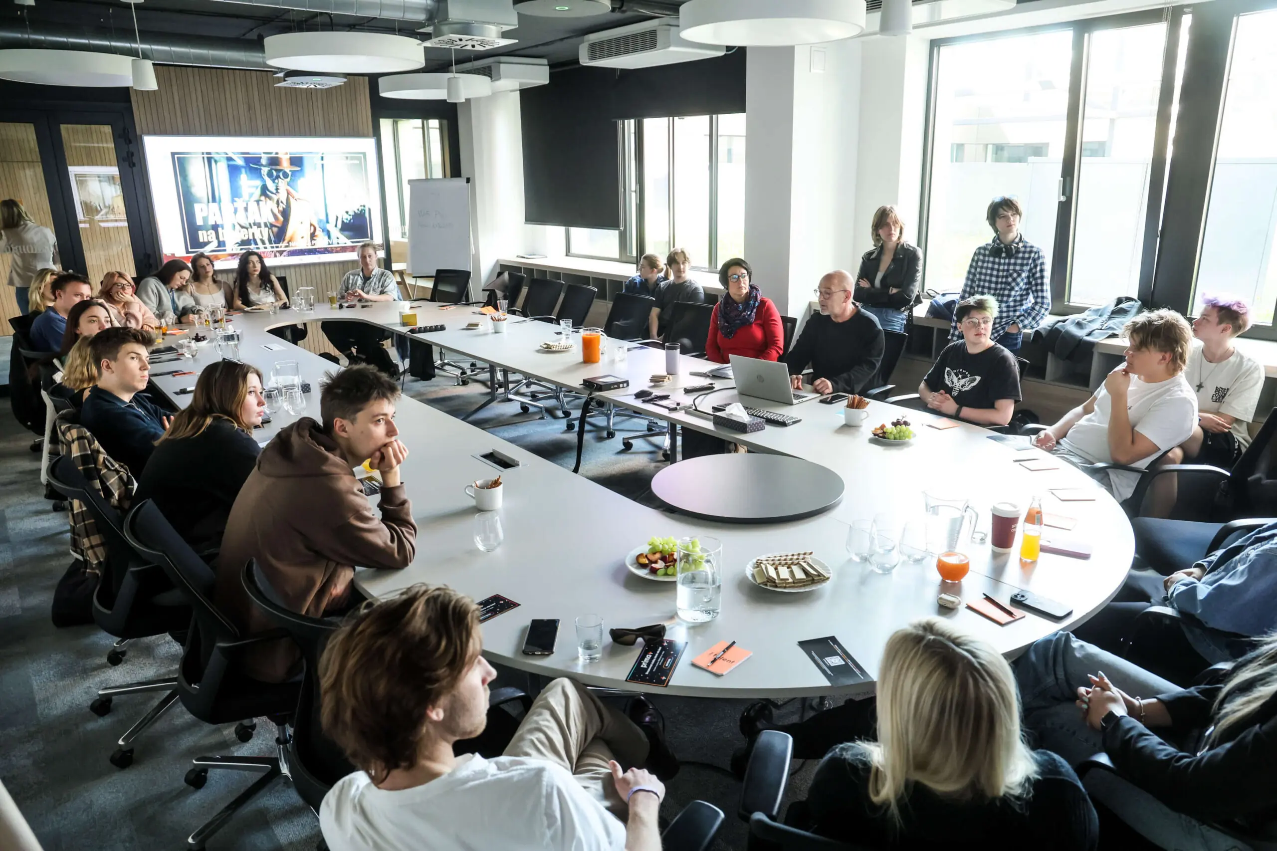 Na workshopu se studenti FAMO podívali pod pokličku Zrádcům Pro studenty Filmové akademie Miroslava Ondříčka v Písku jsme připravili další ze série workshopů s našimi televizními profesionály. Petr Bílek přiblížil, jak vypadá produkce tak velkého a složitého projektu, jako jsou Zrádci. Roman Kopřivík a Klára Balvínová pohovořili o práci dramaturgů a Zdeněk Viktora na závěr detailně vysvětlil rozdíly mezi long running seriály a uzavřenou sérií.